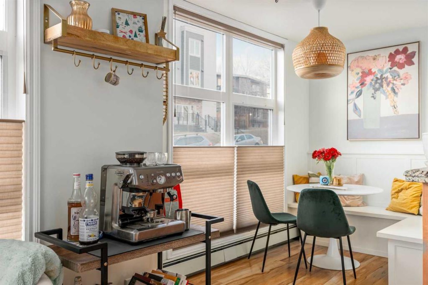 2 BED 2 BATH | CORNER UNIT | STUNNING DOWNTOWN VIEWS | PET LOVERS DREAM | Welcome to the Portico, located in the desirable neighbourhood of Renfrew and right on the border of Bridgeland - two of Calgary’s most vibrant inner-city communities and just minutes from Calgary's downtown core. This gorgeous 2 bedroom, 2 bathroom corner unit offers nearly 900 sq ft of thoughtfully designed space, wrapped in floor-to-ceiling windows that flood this open-concept home with beautiful natural light. With S/SW exposure, you’ll enjoy the sunshine as well as stunning views of downtown and the iconic Calgary Tower - the sunsets are especially breathtaking! Inside, the kitchen features plenty of cabinetry, granite countertops, stainless steel appliances, and a raised bar for casual dining. The dining space has the sweetest custom-built breakfast nook from which you also get to enjoy the city views. The bright and airy living area features a cozy gas fireplace, perfect for Calgary winters. The spacious entryway makes a welcoming first impression, and the dedicated laundry room offers additional storage space to keep everything organized. One titled underground parking stall & a large secure storage locker is included. Step out onto your private balcony overlooking downtown, complete with a gas BBQ line - perfect for summer evenings with friends or quiet mornings soaking in the city views. Pet lovers or those with mobility issues will especially appreciate this unique building design. Entry is from the second level, meaning no elevator or stairs are required for you or your pup, while the unit itself is elevated above ground level for added privacy and security. The Portico is a pet-friendly building with fantastic off-leash parks nearby. Living here means getting to enjoy the cafés, restaurants, shops and river pathway systems that make Renfrew and Bridgeland so sought-after. Calgary favourites like Luke’s Drug Mart, Bridgeland Market, Bar Gigi, and Mari Bakeshop are all minutes away, with easy access to downtown. Step into the heart of Bridgeland and Renfrew living - comfort, convenience and community all in one place. This condo is the perfect opportunity to plant roots in one of Calgary’s best inner-city neighbourhoods.