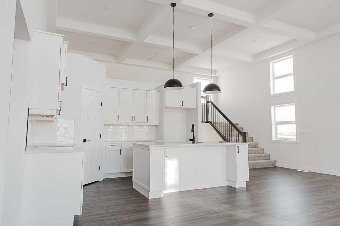 Introducing The Mackinley job #354, a highly sought-after modified bi-level built by Crosslink, now reimagined with a fresh, contemporary edge. This standout floor plan continues to impress with its signature architectural details and elevated finishes throughout. Step into the stunning great room, highlighted by an impressive 16 ft coffered ceiling, floor-to-ceiling windows, and a cozy gas fireplace. The open-concept kitchen is designed to impress, featuring upgraded cabinetry, quartz countertops, wood soft-close drawers, and undermount lighting, making it the perfect space for both everyday living and entertaining. On the main floor you can also find a full bathroom and 2 bedrooms. Upstairs, a spacious loft/office overlooks the main living area and leads to the luxurious primary suite. This retreat-style bedroom offers a spa-inspired five-piece ensuite with a soaker tub, dual vanities, a stand-up shower, and a massive walk-in closet. The 34' x 24' triple garage comes fully equipped, drywalled, plumbed for a heater, complete with hot/cold taps and a floor drain ready for all your storage and workspace needs. The basement is a blank canvas awaiting your vision or can be finished to the proposed layout for even more living space. This refreshed and always-popular floor plan is must-see. Contact your favorite agent to set up a private viewing! Photos are samples from a previous build and are subject to change.