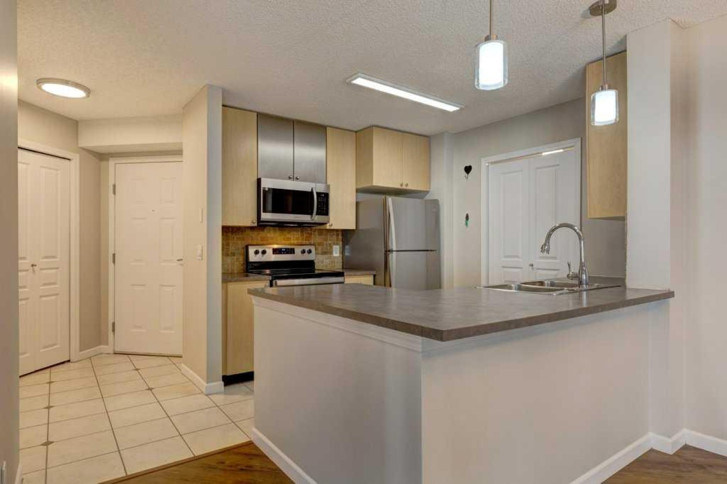 Super private, bright spacious 2 bedroom home with 2 full baths. Corner unit with south and west facing windows that face beautiful trees for privacy, yet still allowing ample natural light throughout. Ceramic tile Foyer to great hospitable entry into unit, opening up through to living space. Spacious kitchen, dark grey counters and eating bar, newer stainless steel appliances, corner pantry, abundant storage, laminate flooring throughout, (except bathrooms). Large entertainment size Living Room with cozy gas fireplace & mantel. The adjacent open concept dining room has view of fireplace and flows seamlessly to the kitchen area. Primary Bedroom has updated 4 pc Ensuite, lots of storage and down hall yet another 4 pc bathroom just across from 2nd bedroom or guest suite. Insuite laundry, large balcony and one indoor titled parking space. Laurel House is a fantastic complex close to Mount Royal University, easy access to Marda Loop, Currie Barracks, Downtown, the Mountains & quick access to Crowchild and Glenmore Trails. Enjoy the facilities; gym, and party/social room where you can step outside to manicured courtyard with gazebo. Please note: The building has recently had significant updates including, fresh interior pain, new roof, enhanced security camera and keyless fob access to underground parking car wash bay and secure bike storage. Great opportunity for first time home buyer, student to mount royal university, investing, or downsizing……Unit recently replaced appliances, lights and repainted throughout.