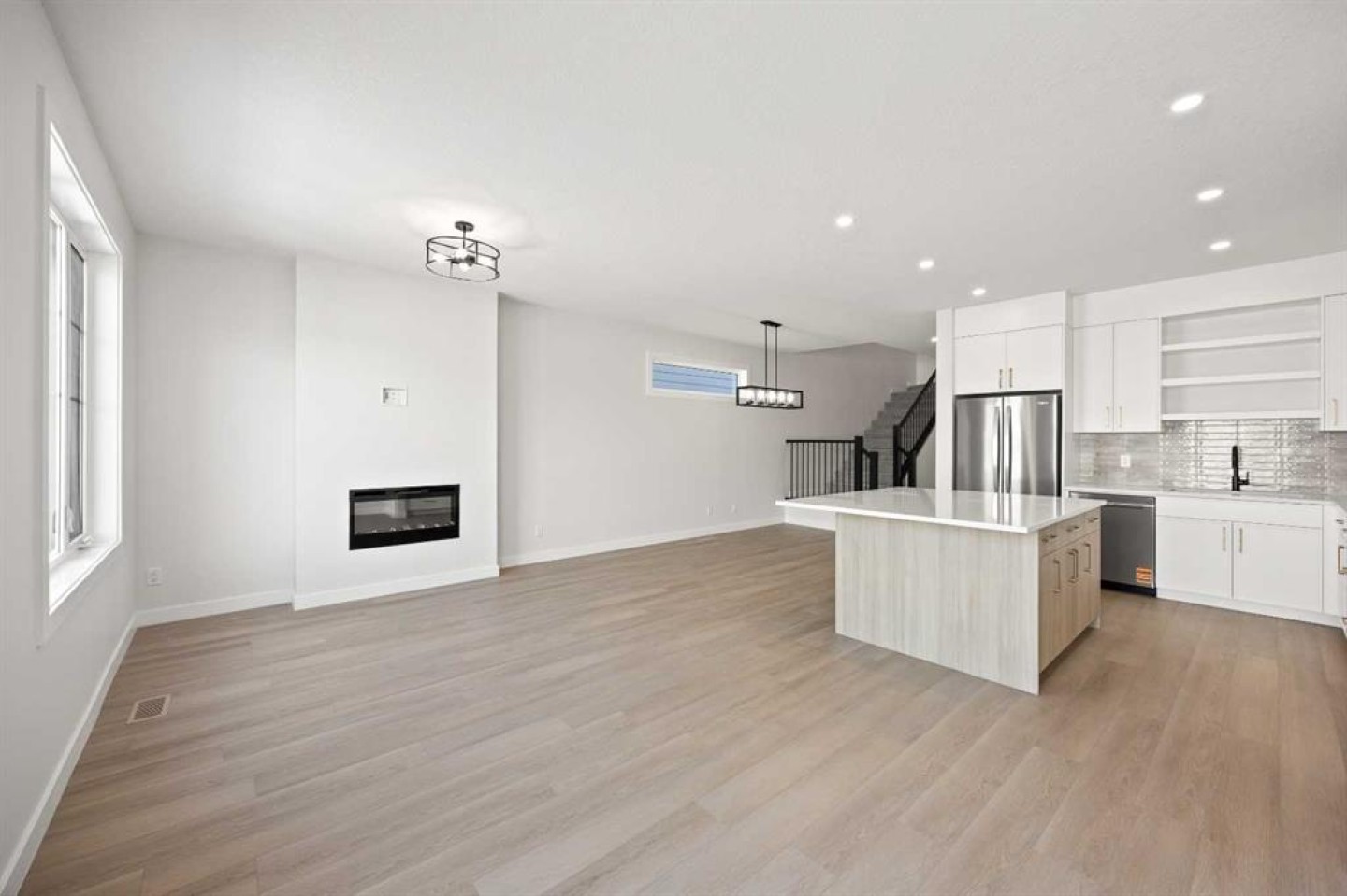 Welcome to the MacKenzie 22 by Partners Homes, a refined paired home with a front attached garage in the highly desirable northwest community of Upper Greenwich. This fully upgraded, move in ready residence offers a sophisticated blend of modern design and functional living in one of Calgary’s most connected and amenity rich neighbourhoods. The main level is thoughtfully designed for both entertaining and everyday comfort. Nine foot ceilings and expansive windows create a bright, open feel throughout. The chef inspired kitchen anchors the home with upgraded cabinetry, quartz surfaces, and a premium appliance package featuring a gas cooktop, built in wall oven, and built in microwave. A generous island flows seamlessly into the dining area and great room, where an electric fireplace adds warmth and architectural presence. The rear deck extends the living space outdoors for effortless hosting. Upstairs, a central bonus room provides flexible space for a media lounge or home office. The primary suite offers a walk in closet and a spa inspired ensuite with dual vanities, quartz counters, and a fully tiled glass shower. Two additional bedrooms, an upgraded main bathroom, and upper level laundry complete the second floor. Architectural details include black plumbing and lighting fixtures, soft close cabinetry, knockdown ceilings, pot lighting, fibre cement siding with stone accents, exposed aggregate entry, and professionally completed front yard landscaping. Located just minutes from the Bow River pathway system, Calgary Farmers’ Market West, WinSport, and northwest retail amenities, Upper Greenwich delivers a rare balance of lifestyle and convenience. Available for immediate possession. A rare opportunity to secure a completed, design forward home in one of northwest Calgary’s most sought after communities