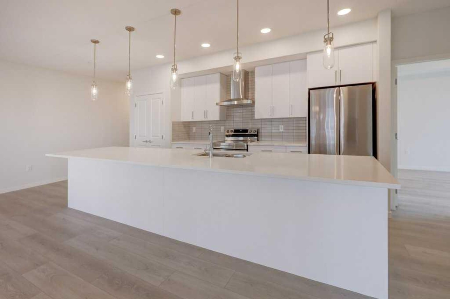 Introducing BELMONT PLAZA, a highly sought-after development in BELMONT, Calgary. BUILT BY CEDARGLEN LIVING, WINNER OF THE Customer Insight BUILDER OF CHOICE AWARD, 6 YEARS RUNNING! BRAND NEW CORNER UNIT, "L3" floor plan with high-spec features. You will feel right at home in this well thought-out 1044.89 RMS sq.ft. (1115 sq.ft. builder size) 2 bed, 2 bath home with open plan, 9' ceilings, LVP flooring through-out (upgraded, no carpet), Low E triple glazed windows, electric baseboard heating, BBQ gas line on the patio, A/C Rough in, and Fresh Air System (ERV). The kitchen is spectacular with full height all white cabinets, extended island upgrade, quartz counters, undermount sink, S/S appliances, including chimney hood fan, built in microwave, and pantry. The extended island is stunning and transitions into the spacious living & dining area, perfect for entertaining. The spacious primary bedroom has a large bright window, sizeable walk-in closet and 4 pc ensuite with extra bank of drawers & full height tile upgrade. 1 additional bedroom located across the unit for noise reduction/privacy and 4pc bathroom (also with upgraded full height tile) located nearby. Laundry & storage closet is thoughtfully planned, definitely a must see (washer/dryer included). Highlights include: upgraded lighting package, sound reducing membrane to reduce sound transmission between floors, clear glass railing to balconies and 1 titled underground parking stall included. Steps away from shopping, restaurants and so much more. Belmont offers a vibrant neighbourhood that’s extremely well-connected through Calgary’s major arteries. Community living with inspired design. PET & RENTAL FRIENDLY COMPLEX.