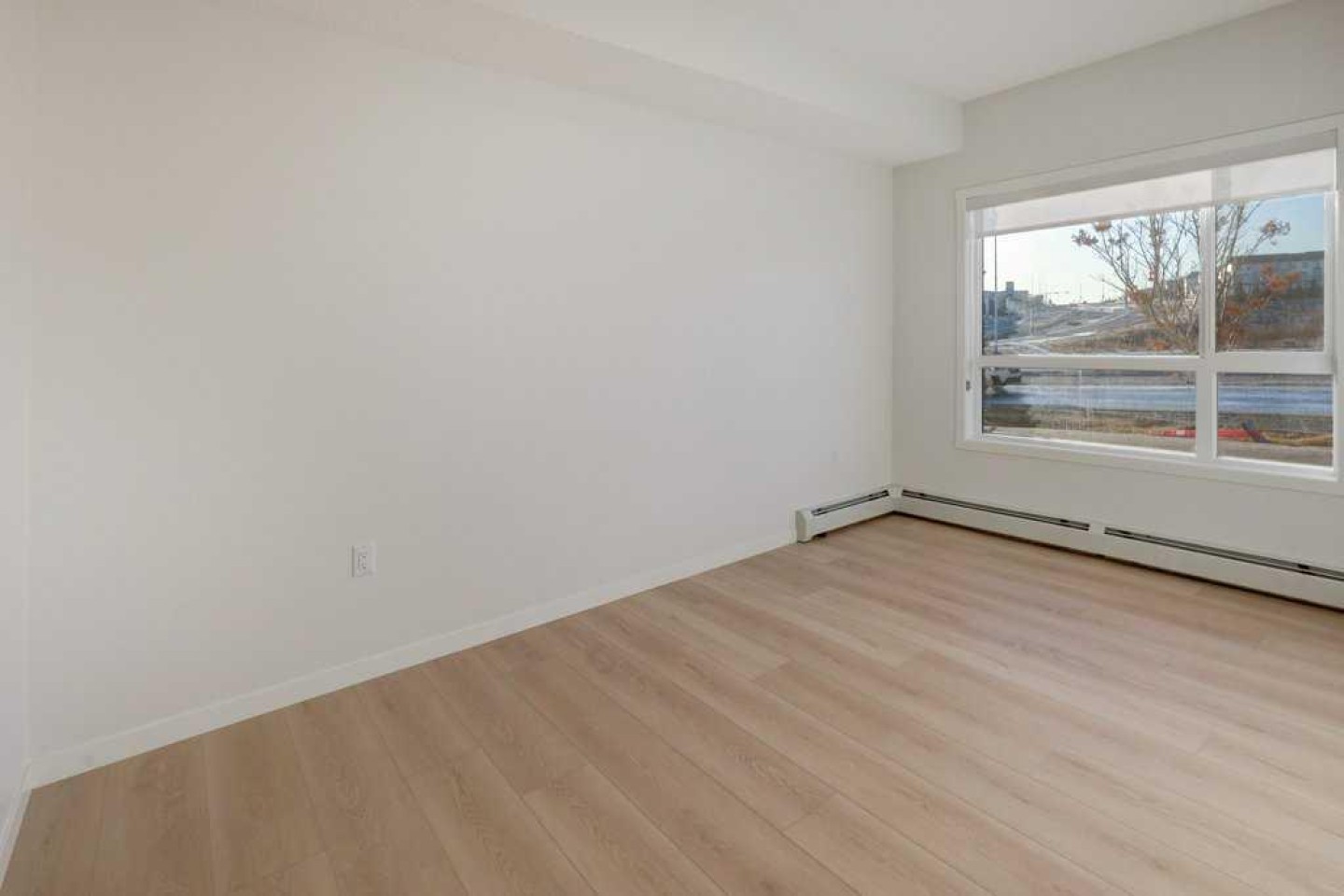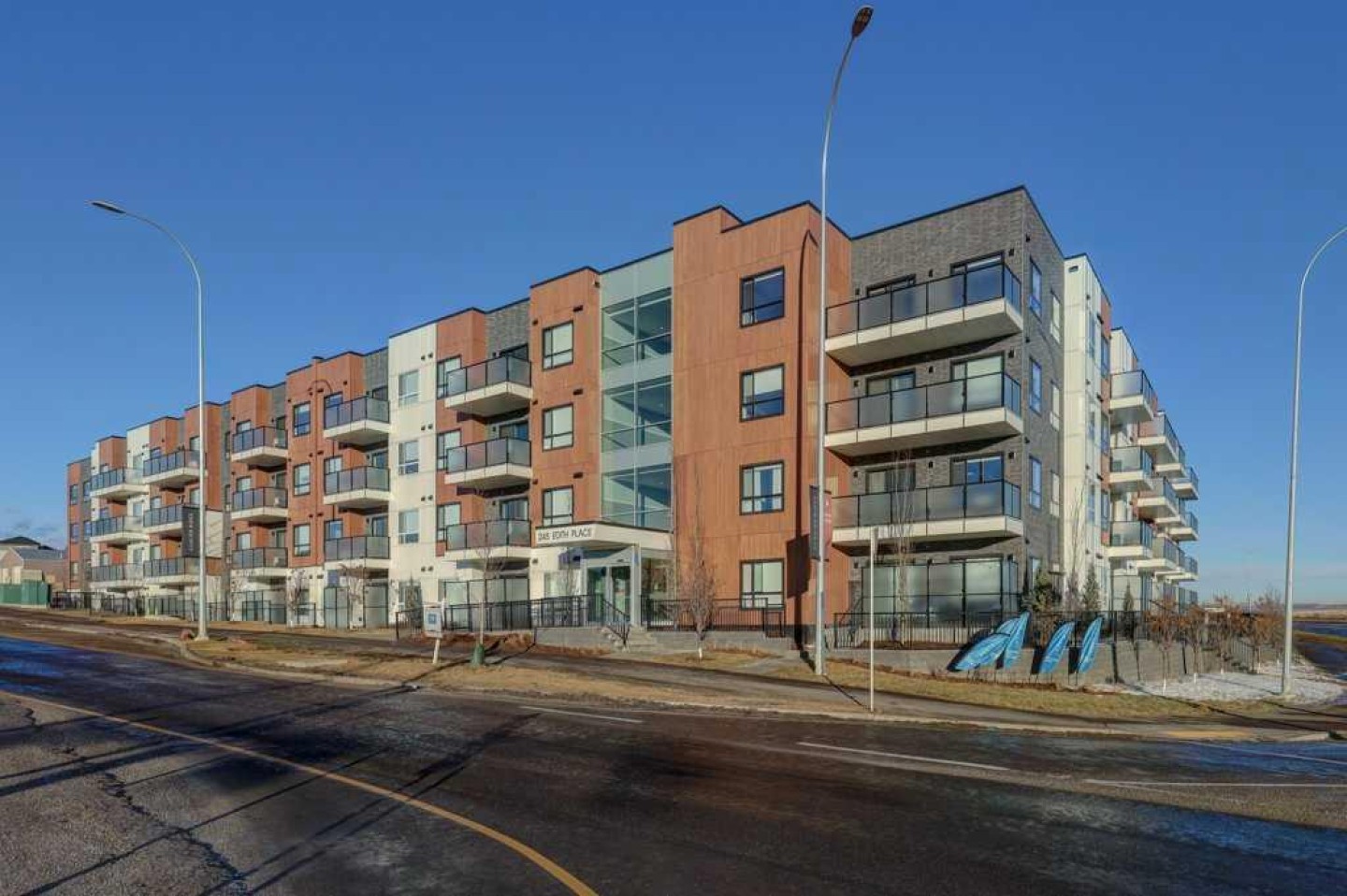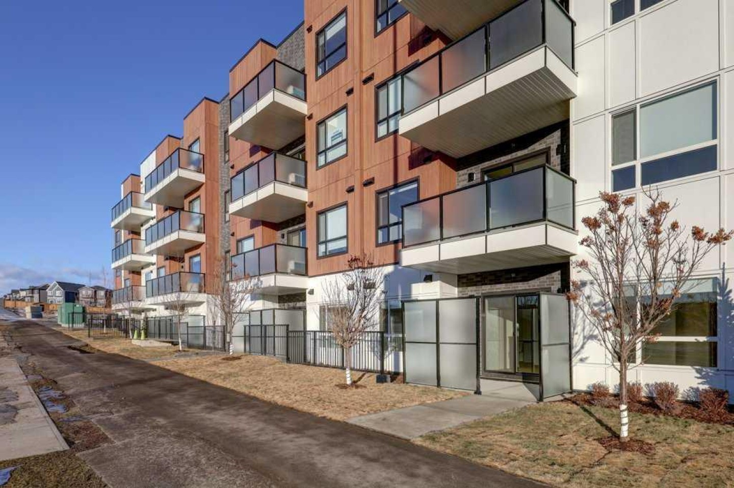 INTRODUCING GLACIER RIDGE, IN BEAUTIFUL NORTHWEST CALGARY. BUILT BY CEDARGLEN LIVING, WINNER OF THE Customer Insight BUILDER OF CHOICE AWARD, 6 YEARS RUNNING! BRAND NEW "GR07R" unit with high-spec features. You will feel right at home in this well thought-out, 915.99 RMS sq.ft. 2 bed, 2 bath home with open plan, 9' ceilings, LVP flooring throughout (NO CARPET), Low E triple glazed windows, BBQ gas line on the patio, Fresh Air System (ERV), A/C rough-in, and so much more. The kitchen is spectacular with full height, two tone cabinets, quartz counters, upgraded bank of drawers for pots and pans, undermount sink, rough-in water line to the fridge and S/S appliances. The island is extensive with built in flush breakfast bar, which transitions into the spacious living area, perfect for entertaining. The spacious primary bedroom has a large bright window (triple pane windows) and huge walk-in closet. You'll be impressed with the 4pc ensuite with double vanities and stand up shower. The second bedroom is located on the other side of the unit for privacy and a 4pc bath with quartz counters, and undermount sink is located next to it. Nearby is the spacious laundry/storage room, this is a must see (washer & dryer included). Highlights include: Hardie board siding, designer lighting package, sound reducing membrane to reduce sound transmission between floors, clear glass railing to balconies and 1 titled underground parking stall included. A once in a lifetime community in Northwest Calgary. Framed by views of the Rocky Mountains and distinguished by natural coulees that cross the land, Glacier Ridge offers a rare chance for families to live in a new community. PET FRIENDLY COMPLEX, IMMEDIATE POSSESSION AVAILABLE AND DON'T FORGET TO CHECK OUT THE VIRTUAL TOUR.