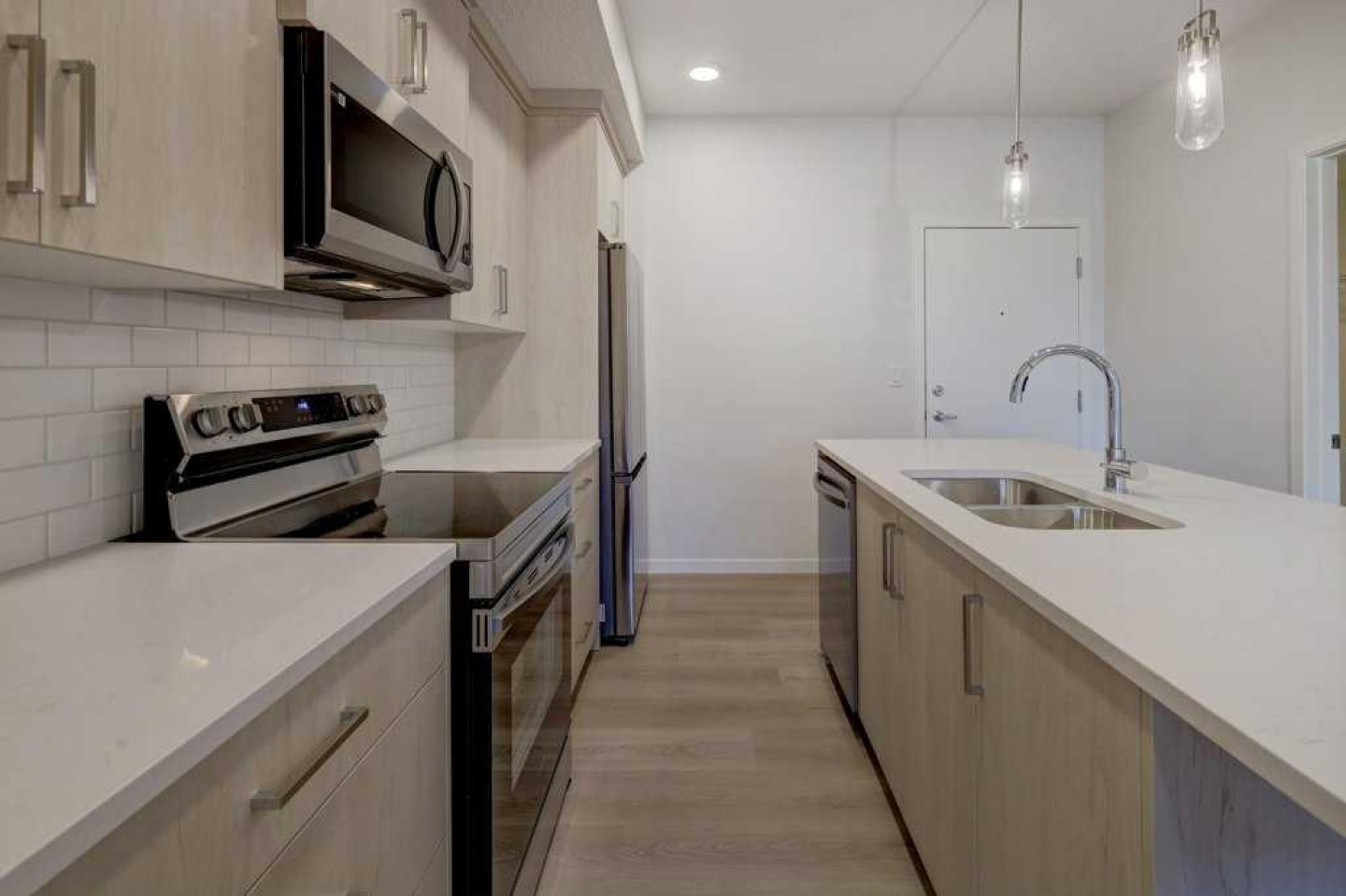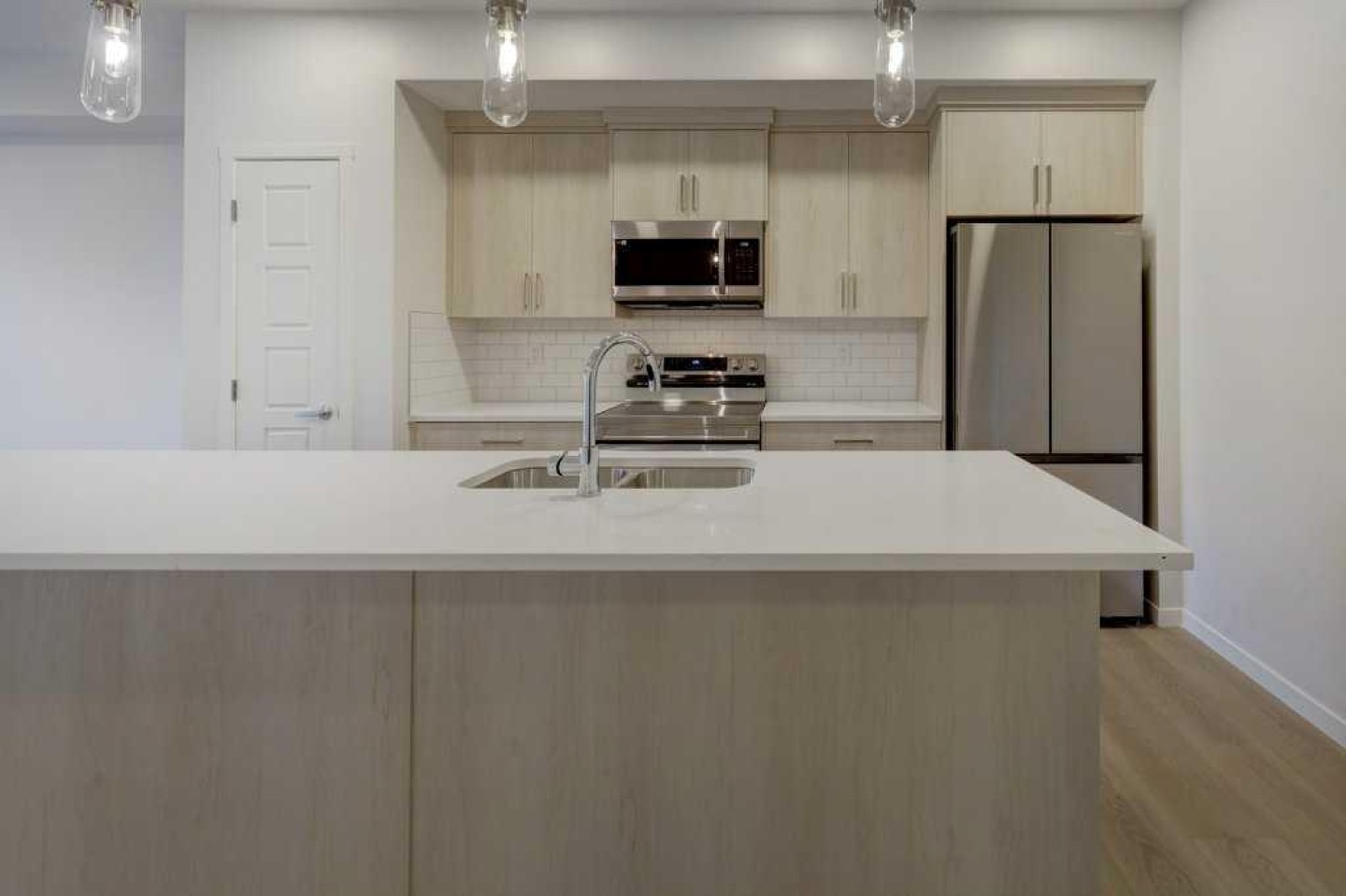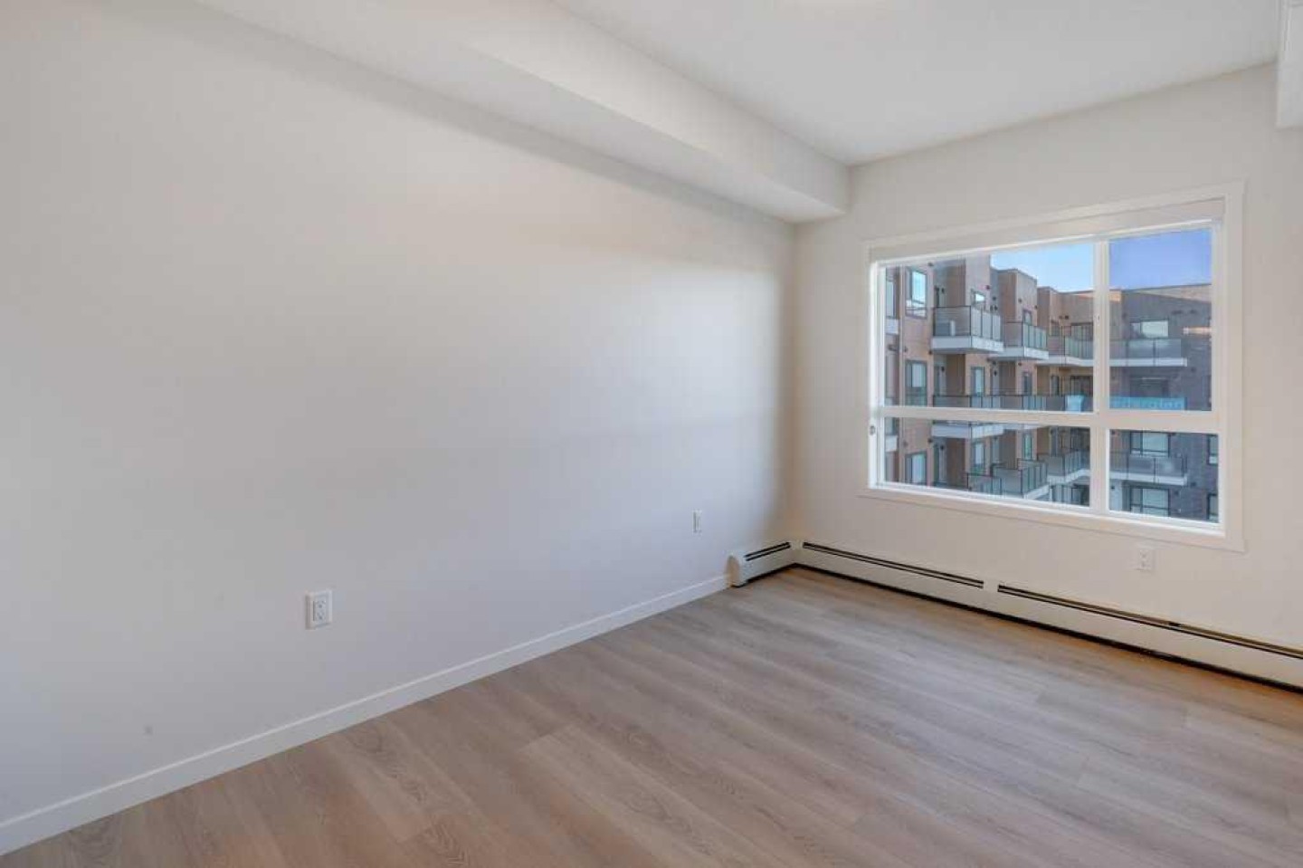 INTRODUCING GLACIER RIDGE, IN BEAUTIFUL NORTHWEST CALGARY. BUILT BY CEDARGLEN LIVING, WINNER OF THE Customer Insight BUILDER OF CHOICE AWARD, 6 YEARS RUNNING! BRAND NEW "GR04" unit with high-spec features. You will feel right at home in this well thought-out, 586.94 RMS sq.ft. 1 bed, 1 bath home with open plan, 9' ceilings, LVP flooring throughout (NO CARPET), Low E triple glazed windows, BBQ gas line on the patio, Fresh Air System (ERV), A/C rough-in, and so much more. The kitchen is spectacular with full height, two tone cabinets, quartz counters, upgraded bank of drawers for pots and pans, undermount sink, rough-in water line to the fridge and S/S appliances. The island is extensive with built in flush breakfast bar, which transitions into the spacious living area, perfect for entertaining. The spacious primary bedroom has a large bright window (triple pane windows) and sizeable walk-in closet. Right beside your bedroom is a 4pc bath with quartz counters, upgraded tiles to the ceiling, and undermount sink. Nearby is the spacious laundry/storage room, this is a must see (washer & dryer included). Highlights include: Hardie board siding, designer lighting package, sound reducing membrane to reduce sound transmission between floors, clear glass railing to balconies and 1 titled underground parking stall included. A once in a lifetime community in Northwest Calgary. Framed by views of the Rocky Mountains and distinguished by natural coulees that cross the land, Glacier Ridge offers a rare chance for families to live in a new community. PET FRIENDLY COMPLEX, IMMEDIATE POSSESSION AVAILABLE AND DON'T FORGET TO CHECK OUT THE VIRTUAL TOUR.
