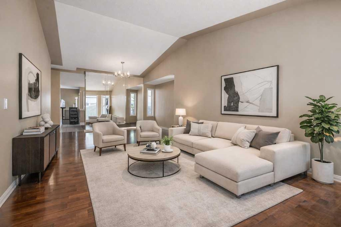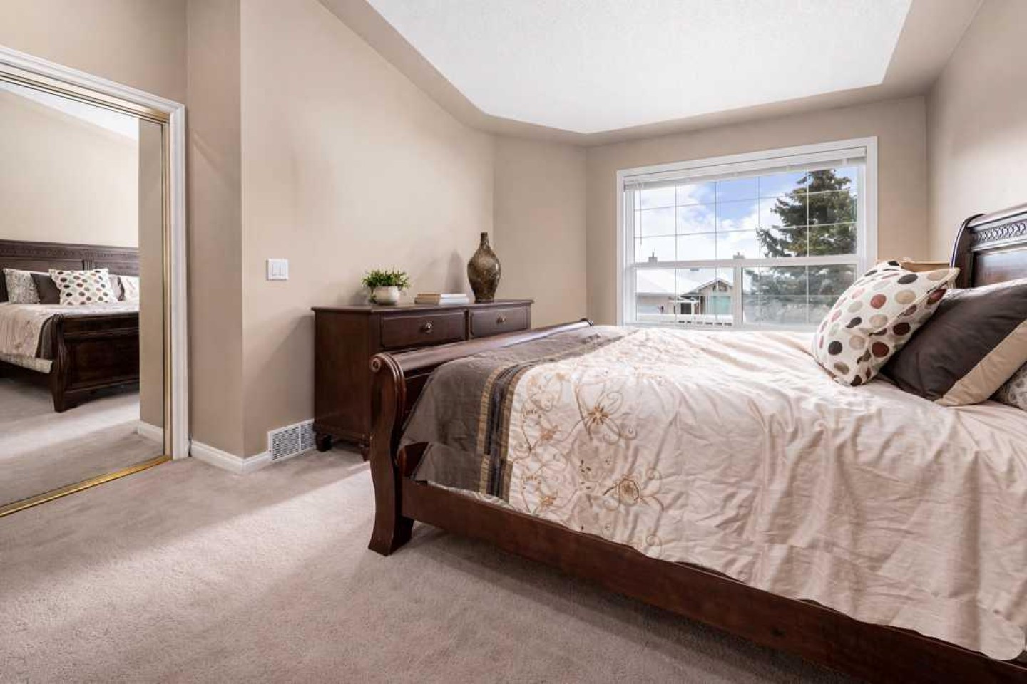 The main level is anchored by a spacious primary suite with vaulted ceilings and a 4-piece ensuite featuring a tub and separate shower, plus main-floor laundry & a convenient powder room to keep life simple.