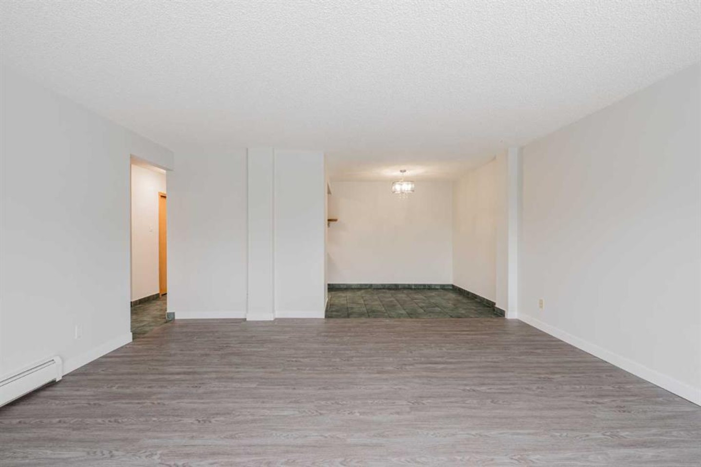 Located in Southglen, a quiet, well-maintained adults-only (18+) complex, this updated south-facing 2-bedroom, 1-bathroom unit offers privacy with only one shared wall and is truly move-in ready. Recent upgrades include new vinyl plank flooring (2025), new baseboards in the living room and bedrooms (2025), new electric stove and microwave (2025), updated kitchen and bathroom faucets, modern light fixtures, paint (2025), and shower set (2024).
