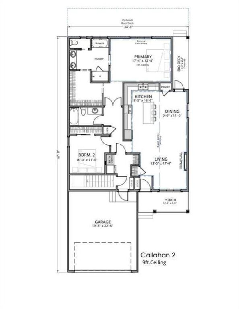 Experience refined bungalow living in the heart of Diamond Ridge. Situated on Lot 41 at 312 John Avenue SW in Diamond Valley, this brand-new Callahan 2 custom home offers thoughtfully designed single-level living with modern finishes and exceptional functionality. This detached bungalow features 1,368.2 sq. ft., 2 bedrooms, and 2 full bathrooms, along with an unfinished basement providing excellent opportunity for future development. The layout is both open and intentional, creating a seamless flow between the kitchen, dining, and living areas—ideal for everyday comfort and entertaining. The living room is anchored by a sleek electric fireplace, creating a warm focal point for the home. Buyers have the option to incorporate a sloped ceiling for added architectural interest. The kitchen is designed for both beauty and efficiency, featuring a large island with breakfast bar, stone countertops, soft-close cabinetry, a pantry for additional storage, and a premium LG appliance package. Privately positioned toward the rear of the home, the primary bedroom serves as a true retreat, complete with 10’ ceilings that enhance the sense of space and light. The spa-inspired five-piece ensuite includes a soaking tub, separate shower, double-sink vanity, private toilet room, and a spacious walk-in closet. A second bedroom is located near the front of the home and is served by a well-appointed three-piece hallway bathroom, offering flexibility for guests or a home office. The mudroom is thoughtfully designed with built-in cabinetry and a stacked washer and dryer, providing practical organization and everyday convenience. Additional highlights include 9’ ceilings throughout the remainder of the main floor, a welcoming front porch, and a double front-facing attached garage. Optional upgrades include a rear deck and/or BBQ deck to enhance outdoor living, deck entrance from primary, and/or alternate front entrance. Located in the thoughtfully planned community of Diamond Ridge, residents enjoy convenient access to local shops, cafés, schools, parks, pathways, and the nearby Sheep River and regional trail systems. Easy connections to Okotoks and south Calgary offer the perfect balance of small-town charm and accessibility. Estimated completion is scheduled for Summer 2026. Photos contain rendered examples.