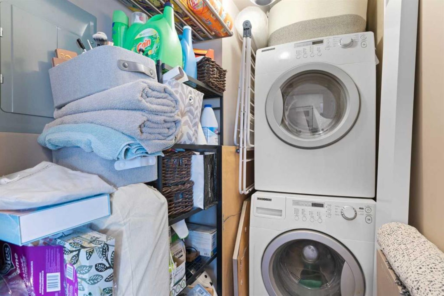 The oversized primary bedroom offers the kind of space that's rare to find, while the updated bathroom is clean and modern. An in-suite laundry with additional storage rounds out the practical side of condo living.