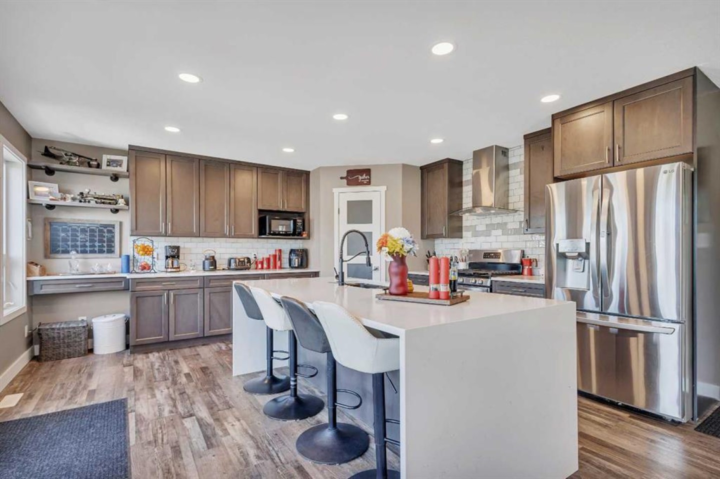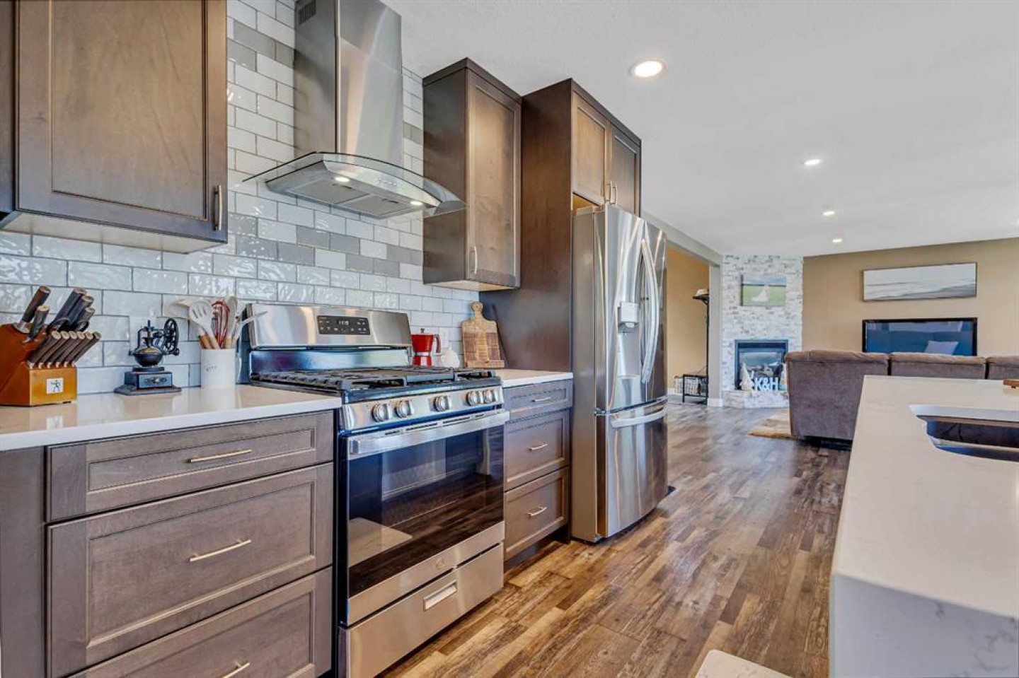 Visit REALTOR® website for additional information.Step into your next chapter with this beautifully updated 2-story home in Rocky Mountain House-offering the perfect blend of style and space, complete with both attached.. & detached garages, a bonus room, a newer roof, and vinyl windows that make it truly one of a kind. From the moment you arrive, you'll be impressed by charming curb. appeal. Step inside to an open-concept main floor filled with natural light from oversized windows, anchored by a gas fireplace with mantel in the living area. The renovated kitchen is a showstopper-featuring sleek new cabinets, a stylish backsplash, gas range, luxurious waterfall quartz countertops, a breakfast bar, & pantry. A convenient 2-piece bath and mudroom complete the main level. Upstairs, you'll find 3 spacious bedrooms, 2 full bathrooms, and laundry right where you need it. The primary suite is a true retreat with a walk-in closet and private 4-piece ensuite. The fully finished basement is a standout feature with a generous rec room, complete with a wet bar/kitchenette, fridge and. stove, a 4th bedroom, and a 3-piece bath-perfect for guests, teens, or even rental potential. Outside, enjoy your own private oasis in the fenced backyard with a large deck for summer BBQs and quiet evenings. There's ample parking in the back, plus the detached garage adds extra versatility and storage. This home has it all-style, substance, and space to grow.