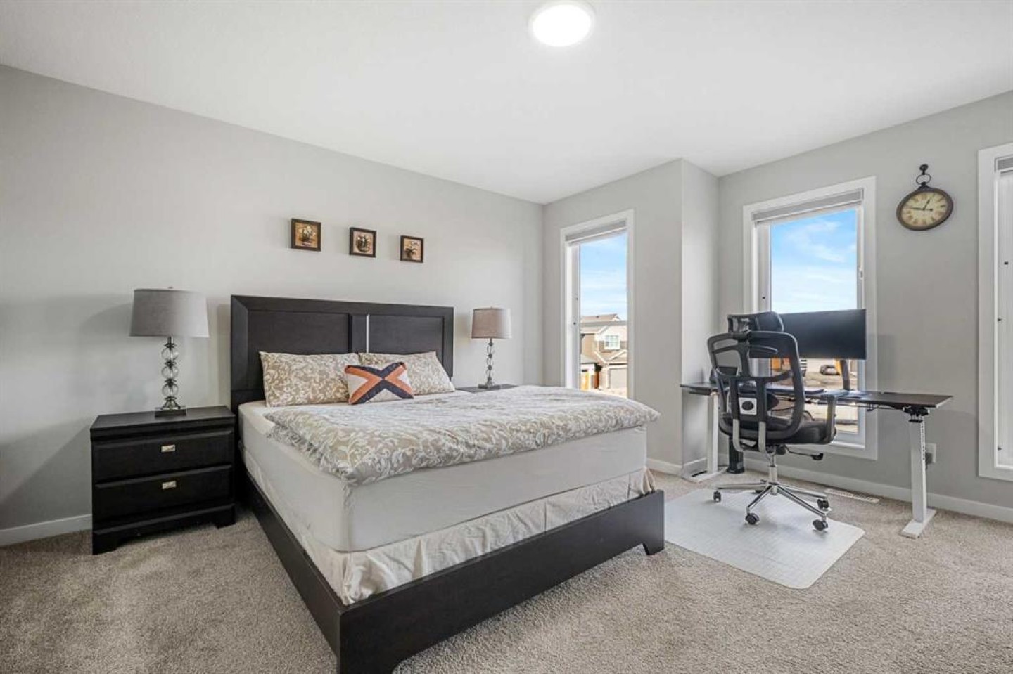 The property features quality construction and a highly practical layout tailored to today’s living needs. The bright and welcoming main floor is filled with natural light from large windows. A dedicated main-floor office adds valuable flexibility and can easily serve as an additional bedroom, making it ideal for guests, multigenerational living, or working from home. A full bathroom on the main level enhances convenience and versatility for daily life.