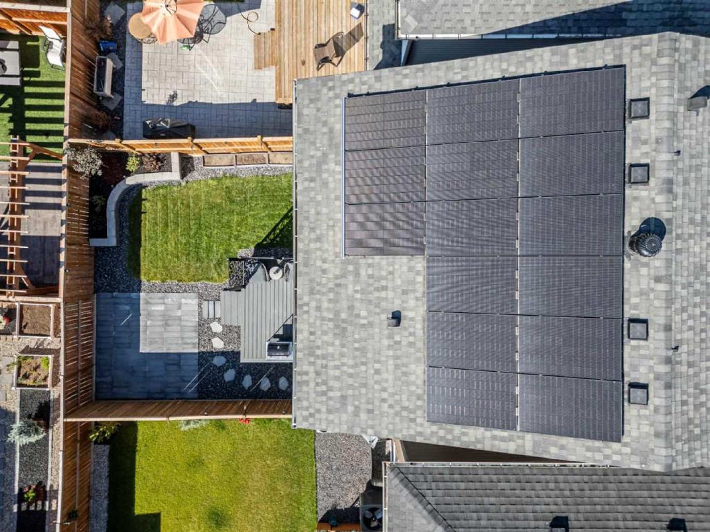The home includes numerous comfort and efficiency upgrades, such as a hot water tank, HRV system, and water softener. An impressive 15-panel solar system delivers approximately 108% energy offset, significantly reducing utility costs while supporting a more sustainable lifestyle. TV brackets are also included for added convenience.